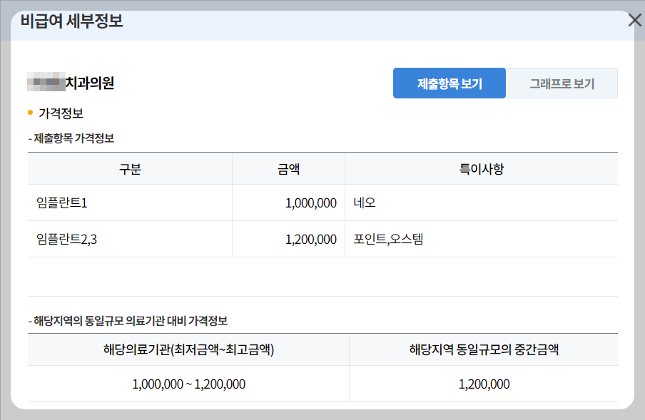 임플란트 수술을 비급여 항목으로 건강보험 혜택이 적용되지 않아 환자가 전액 부담하는 항목으로, 비급여 진료비용은 병원이 자체적으로 금액을 정하기 때문에 병원마다 차이가 있을 수 있습니다.